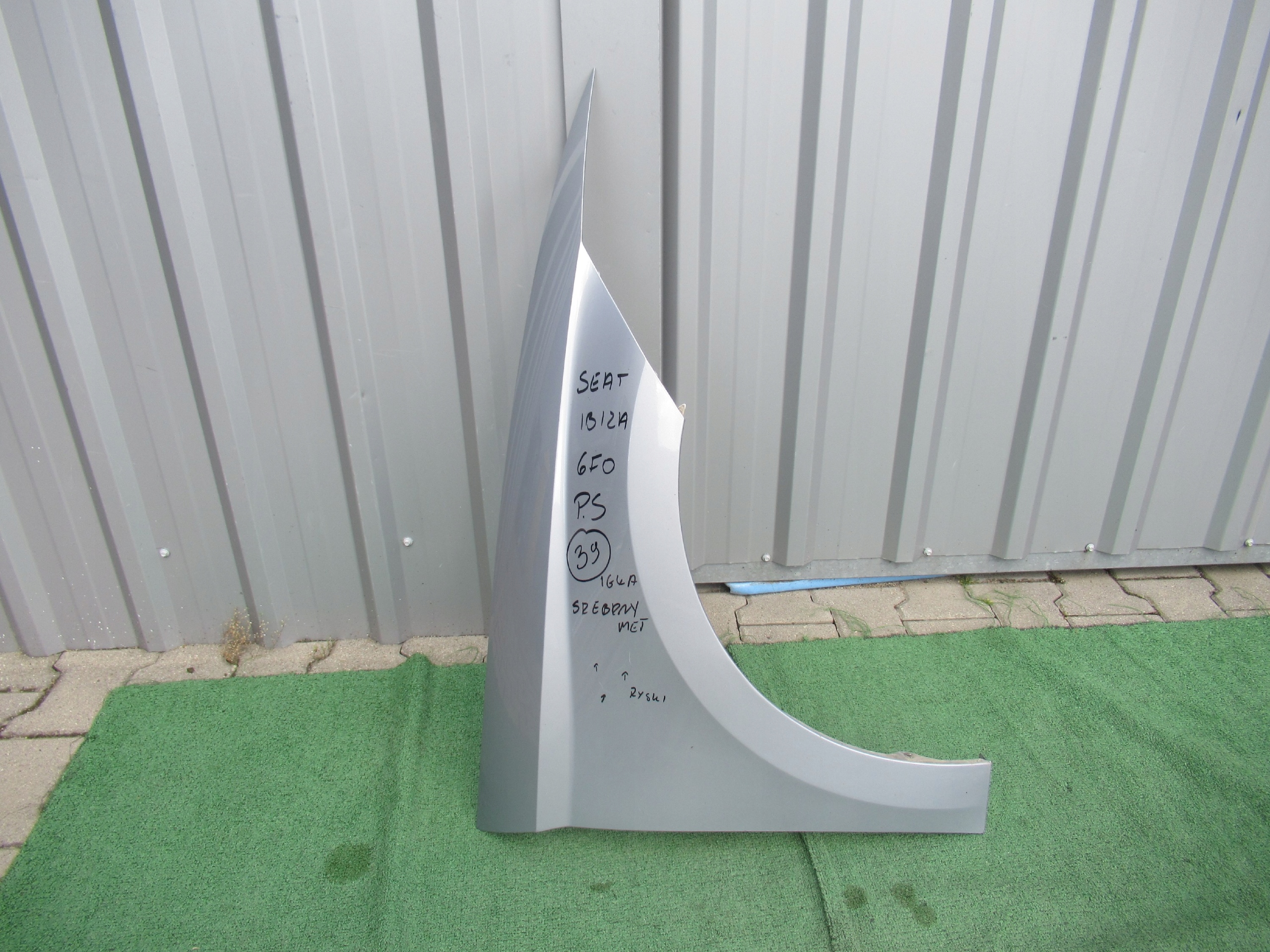 Przedmiotem mojej OFERTY JEST ORYGINALNY UŻYWANY PRAWY BŁOTNIK DO SEAT IBIZY V 6F KOLOR SREBRNY METALIK.
