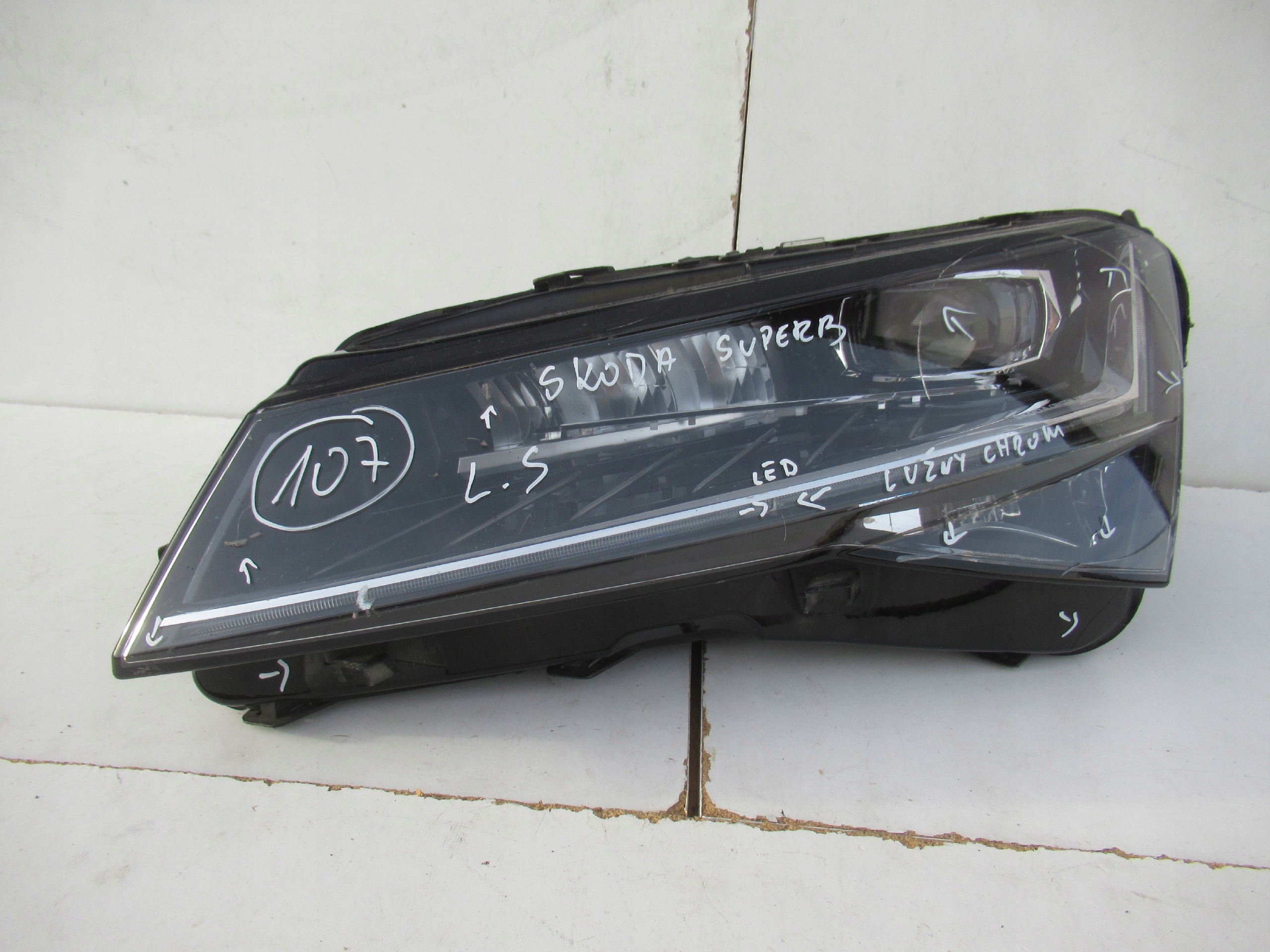 Przedmiotem mojej aukcji JEST LEWY UŻYWANY ORYGINALNY REFLEKTOR PRZEDNI FULL LED DO SKODY SUPERB III LIFT MODEL 3V.